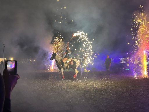 Da – mit einem Mal erscholl ein Knall, als wäre Donar selbst auf die Bühne gestiegen. Die Besucher erschraken, doch rasch wurde deutlich: Es war nur der Auftakt des musikalischen Nachmittags. Die „Kiss Kids“, ein Trupp von Spielleuten mit gemaltem Antlitz und lauter Zunge, begannen ihr Spektakel. Ihre Lieder waren wild, schrill, fremd – doch sie rissen das Volk mit sich. Bald darauf erklangen sanftere Töne – Irish Folk, gefolgt von anderen wandernden Musikanten, deren Weisen wie frischer Morgentau durch das Lager wehten. Man sah Tränen, man sah Tanz – und manch Herz wurde weich wie warmes Brot.