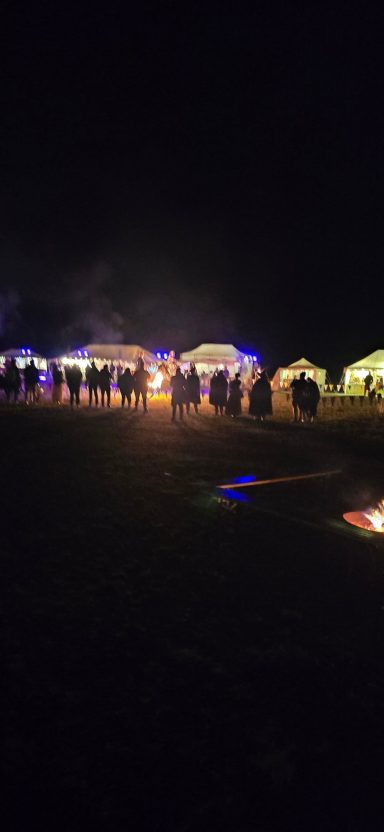 Viele Besucher fanden in diesen Stunden den Weg zum Lager der Wölfe, angelockt vom Duft des Brotes, dem Klang der Lieder und dem guten Ruf der Sippe. Unter ihnen auch Domi und Mario, zwei altbekannte Weggefährten, die mit herzlichem Handschlag begrüßt wurden. Mario, stets ein Mann des guten Wortes und des noch besseren Appetits, konnte nur kurz verweilen – seine Tochter zog ihn weiter, gleich einem kleinen, aber entschlossenen Heerführer.