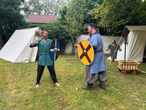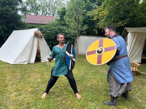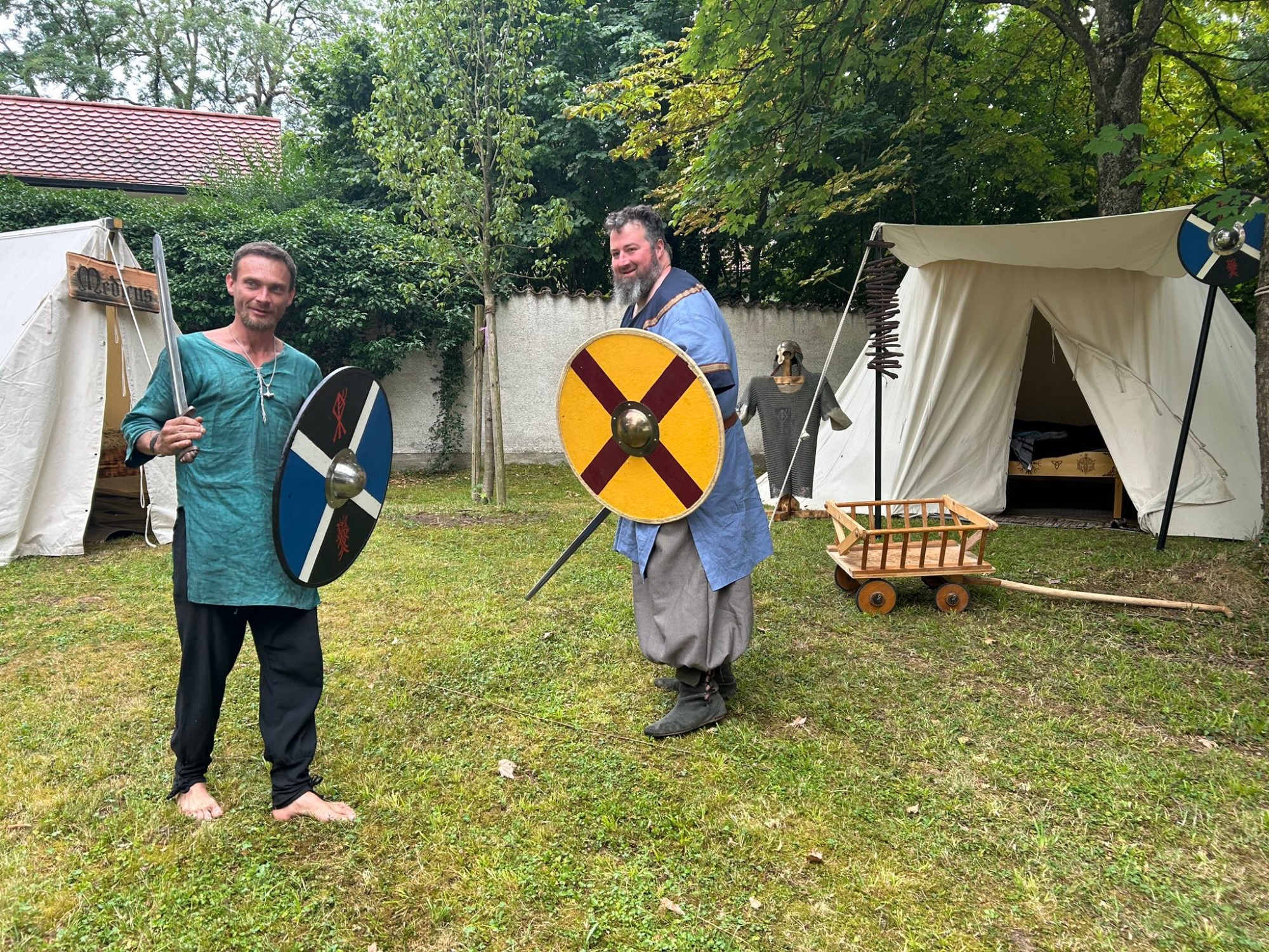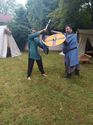 Auch an diesem Tage war Waffenkontrolle – diesmal Leif und Erik. Ob Erik wohl aus Runas Fehler gelernt? Er ging ohne Kopfbedeckung.
