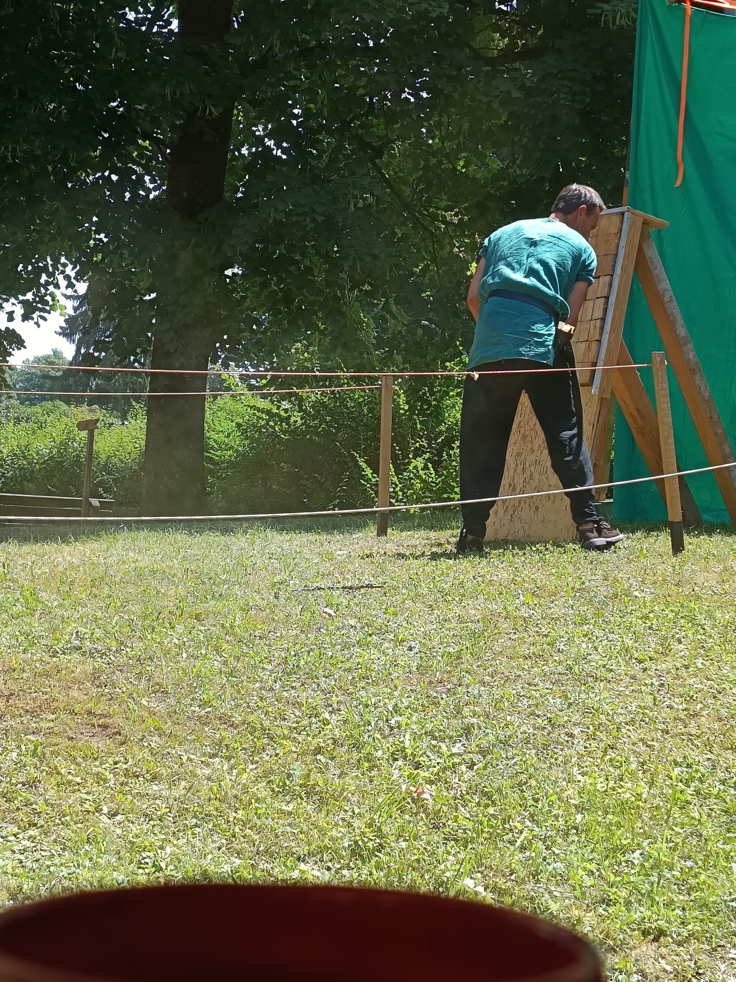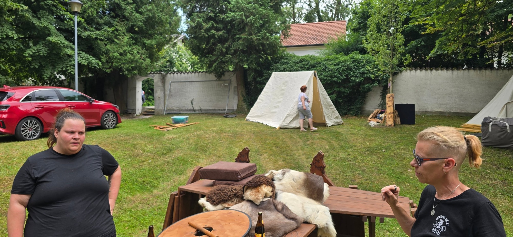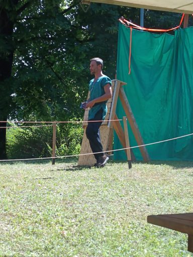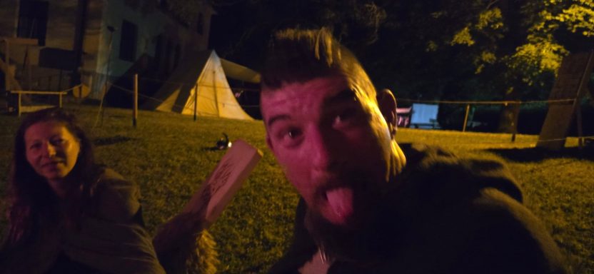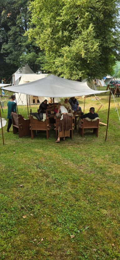 Das Ziel für den Axtwurf ward beim Notausgang aufgestellt – kein Ein- noch Ausgang ohne Zustimmung der Wölfe. Am Nachmittag stieß Gast Vidar zum Lager. Auch er schlug sein Zelt ins Unterholz, dicht bei Anna.