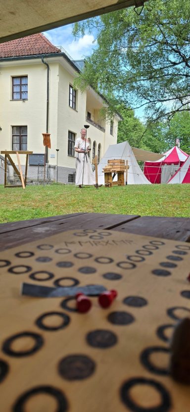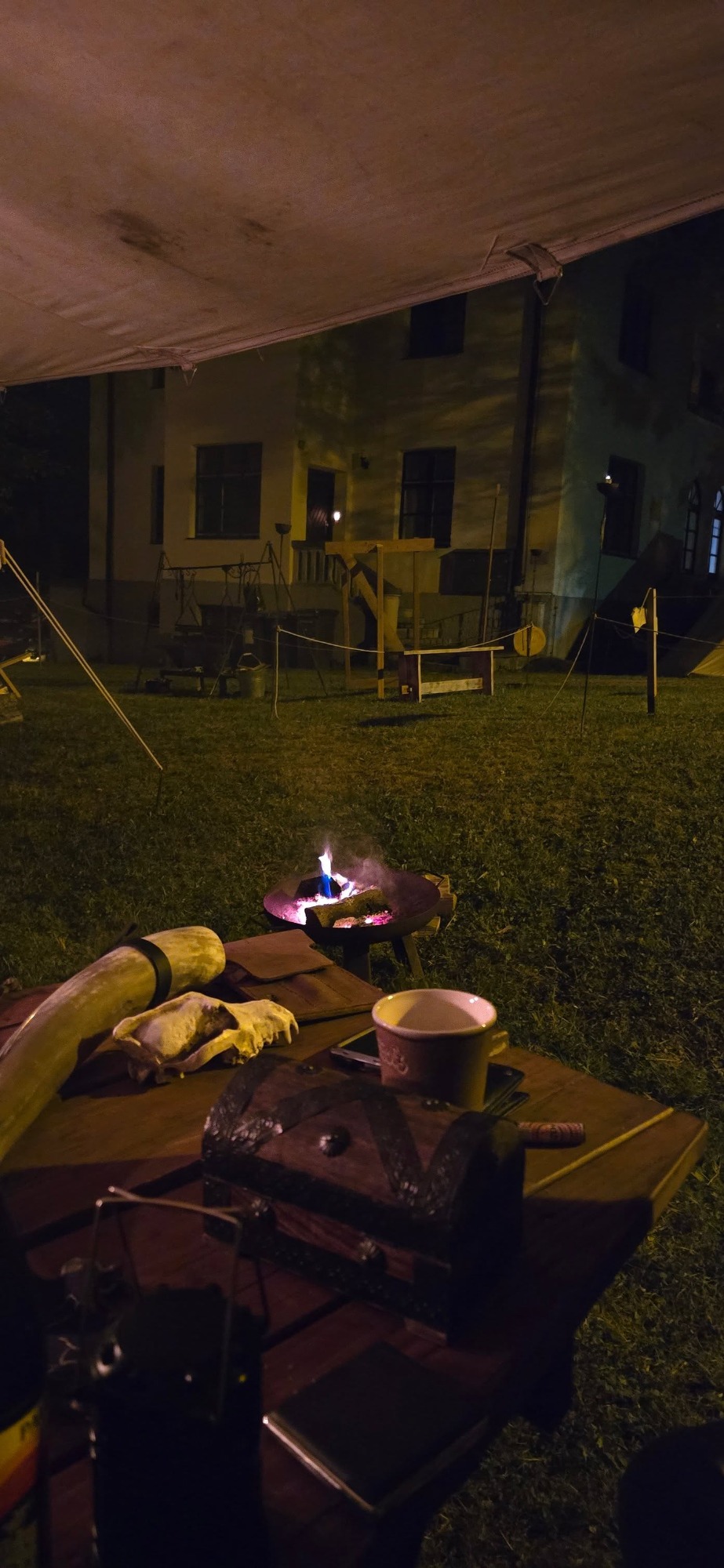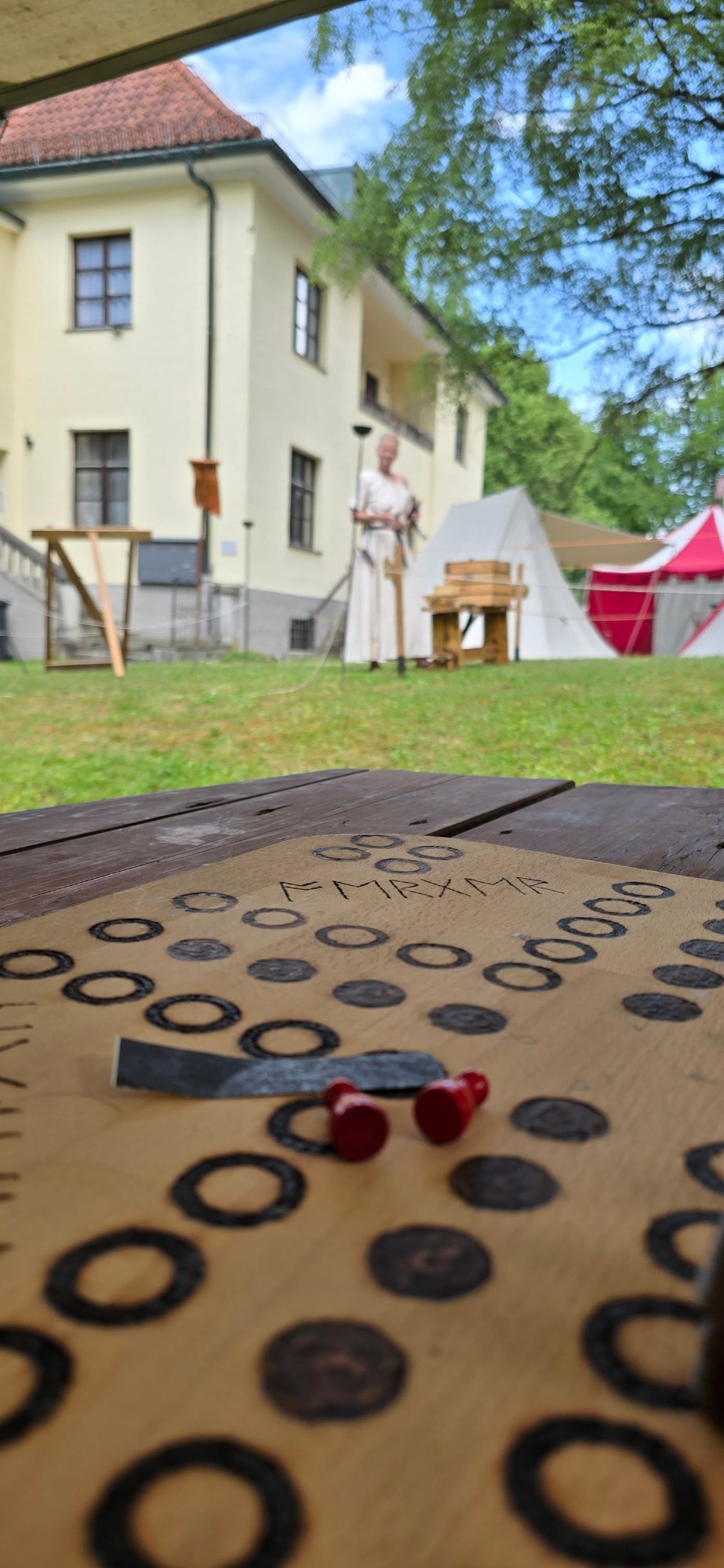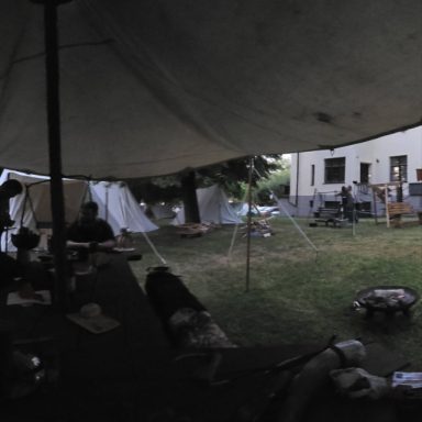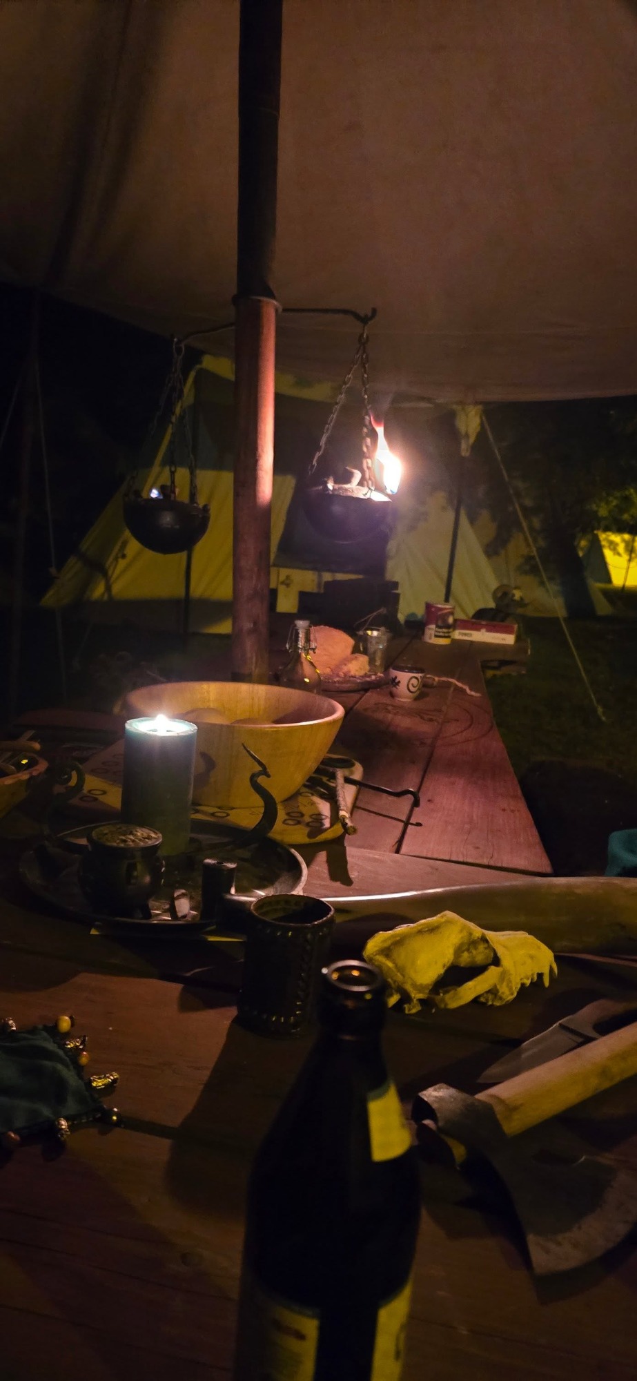 Das Ziel für den Axtwurf ward beim Notausgang aufgestellt – kein Ein- noch Ausgang ohne Zustimmung der Wölfe. Am Nachmittag stieß Gast Vidar zum Lager. Auch er schlug sein Zelt ins Unterholz, dicht bei Anna.