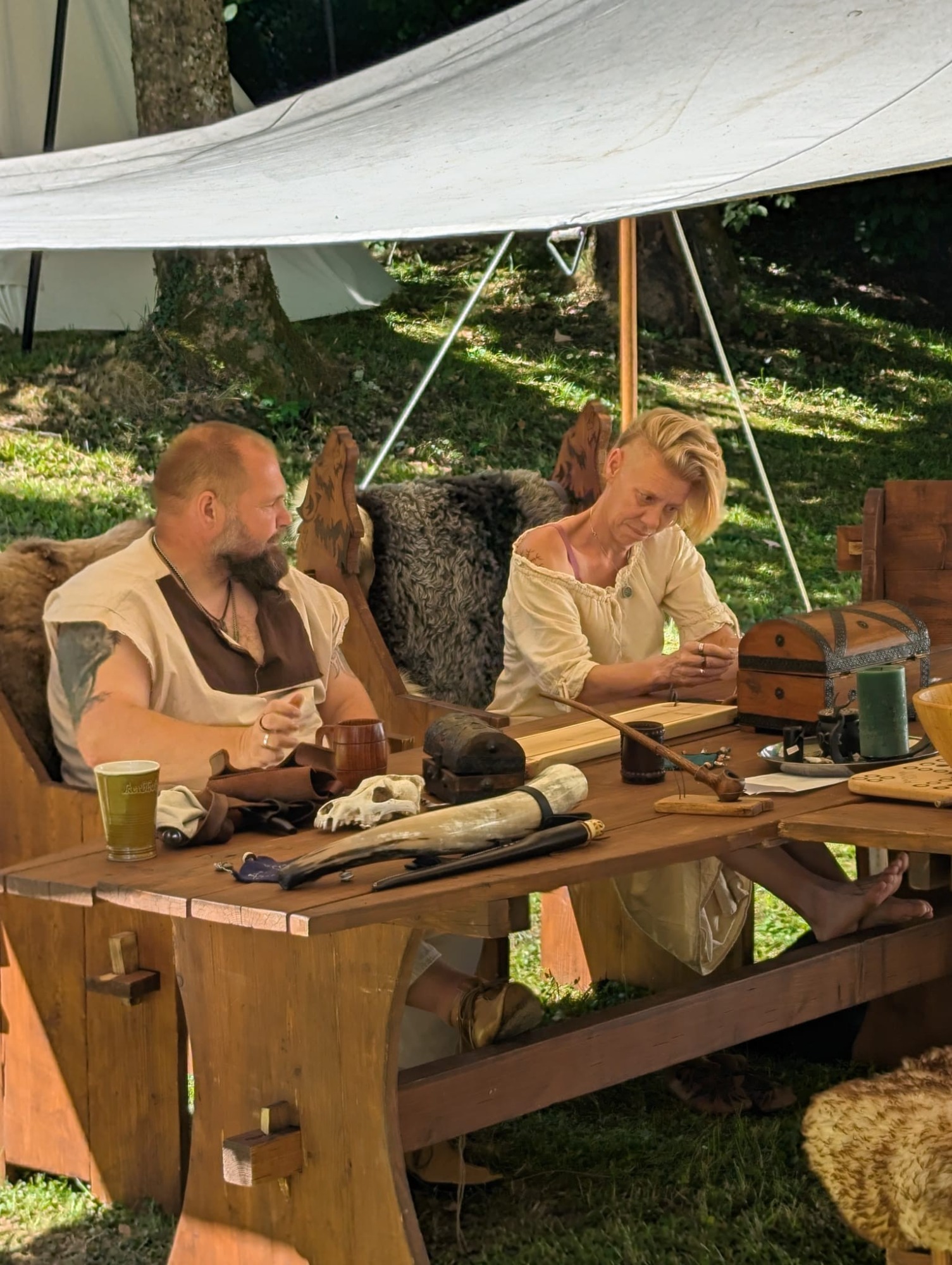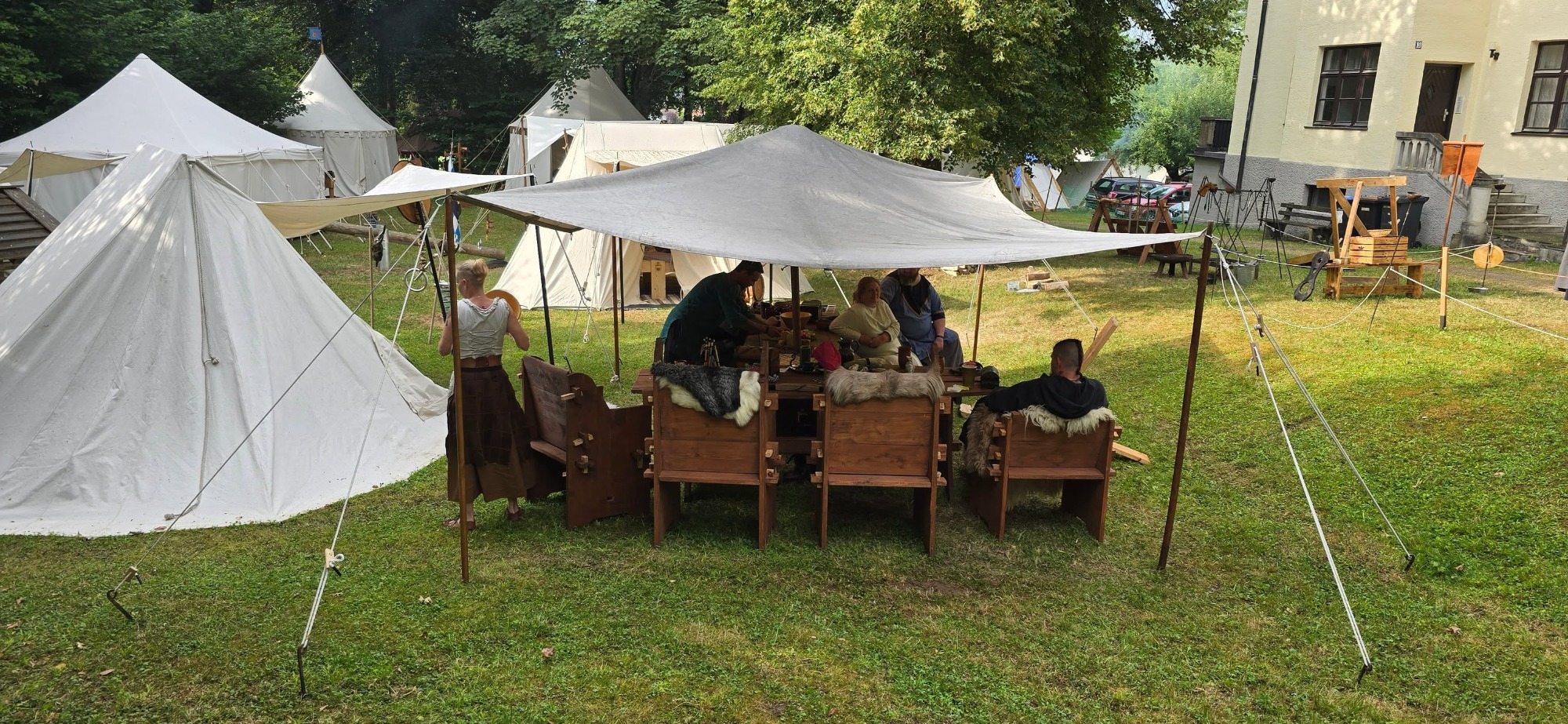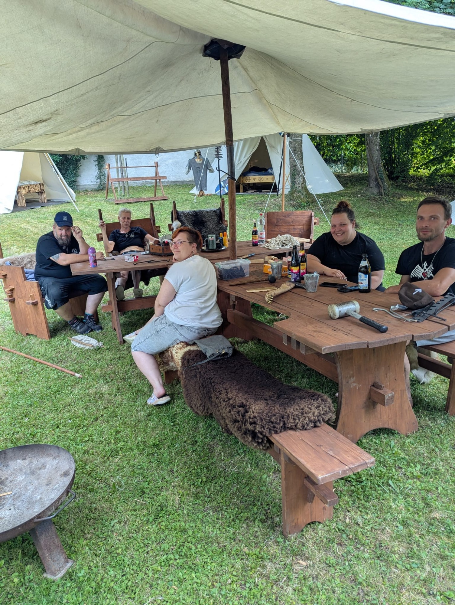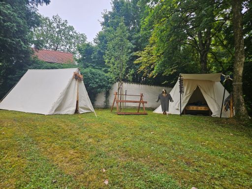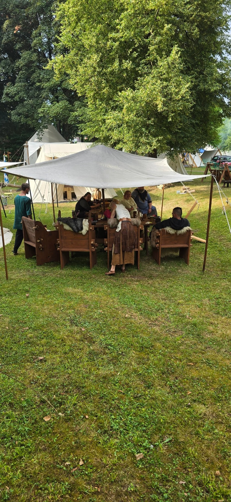 Die Planung ward beschlossen: Das Zelt der Jarle und des Medicus erhob sich auf dem Hügel, der Rest lagerte im Tale um die Tafel. Anna zog sich mit ihrem Zelt ins schattige Dickicht zurück – weise Entscheidung, da die Sonne mit großer Kraft brannte.