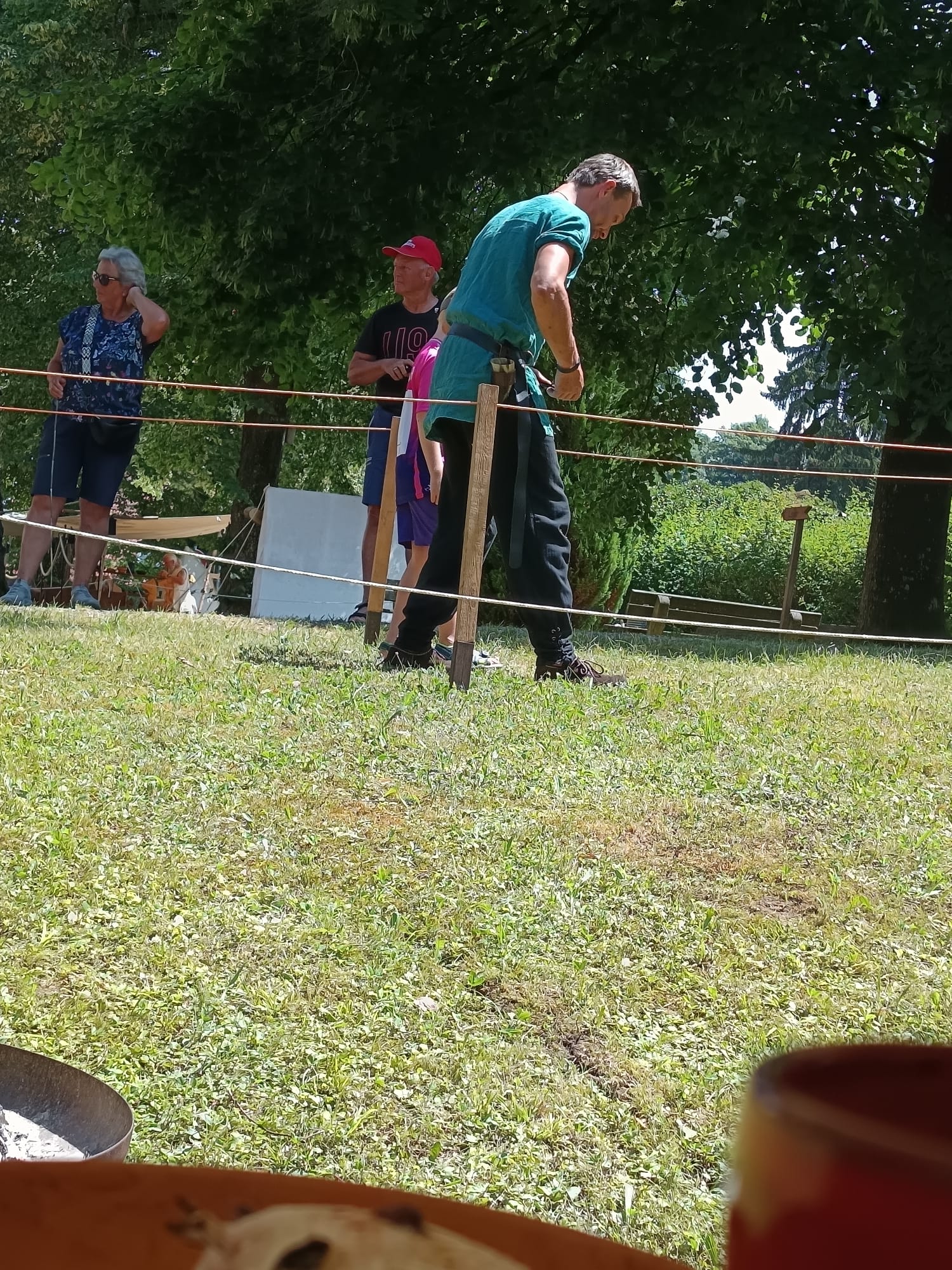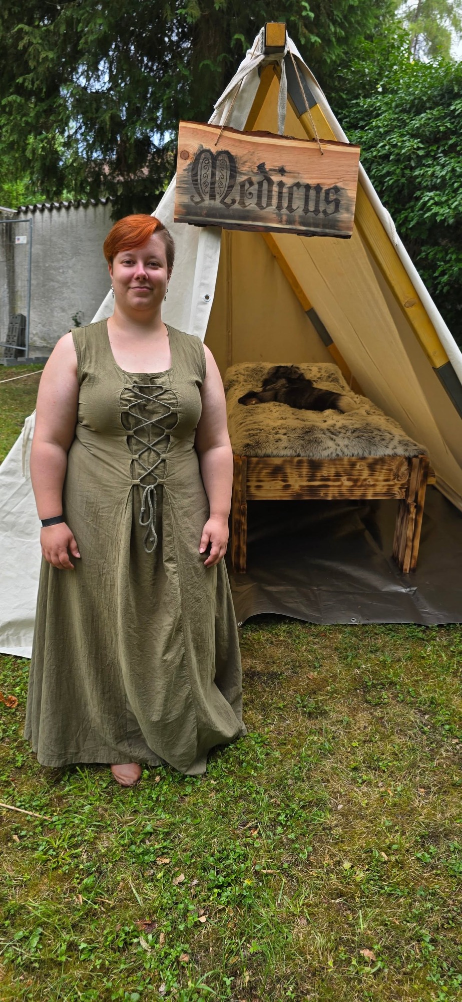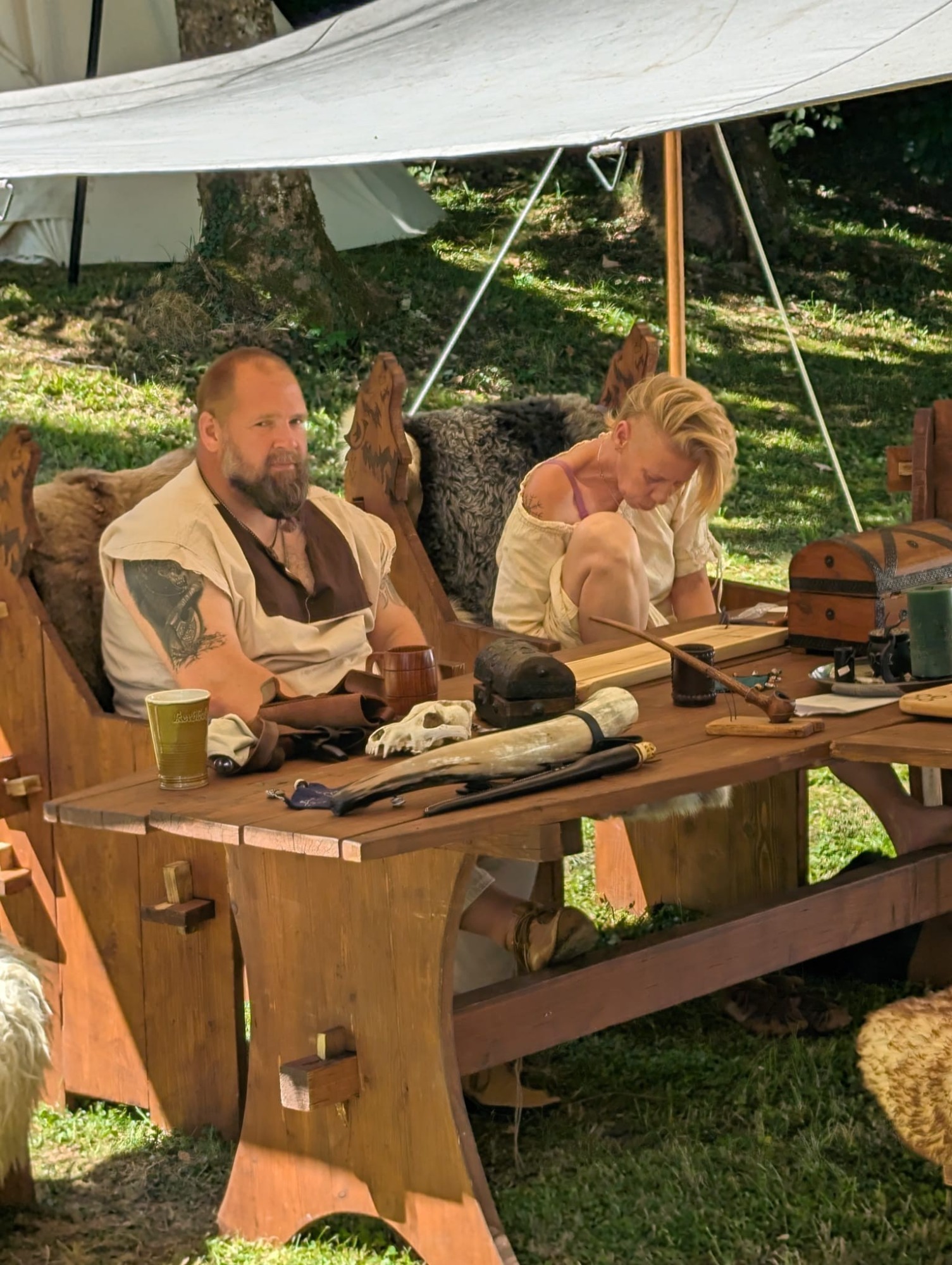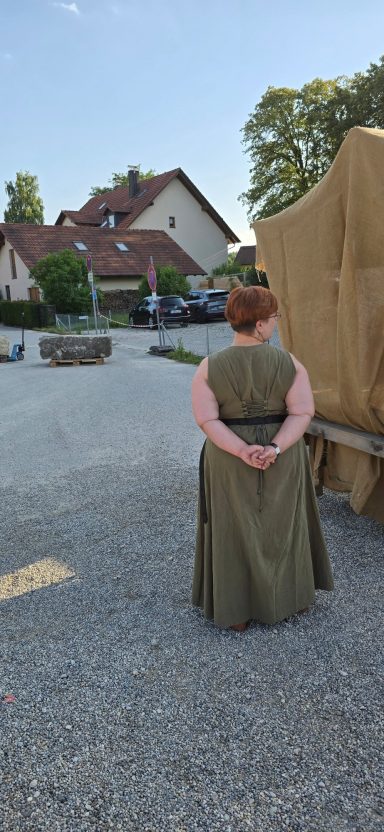Alle harrten noch der Ankunft von Chrissi, die sich den Wölfen vorstellen wollte. Am Nachmittag begaben sich Leif und Runa zur Waffenkontrolle, denn scharfe Eisen durften nicht aufs Fest. So standen die Beiden zwei Stunden in der prallen Sonne. Leif hatte sich seine Mütze aufgesetzt und Runa meinte, sie sei als Medicus vor Sonnenstich gefeit.