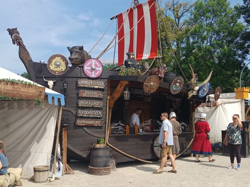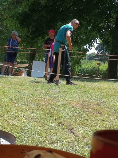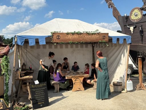Der Aufbau zog sich hin – der Boden sehr uneben, der Abend nahte. Der Magen grummelte. „Das ist Hunger“, stellte der Medicus fest. So machten sich Mara, Angel und die Kinder auf gen Dorf, um Speis und Trank zu erjagen.