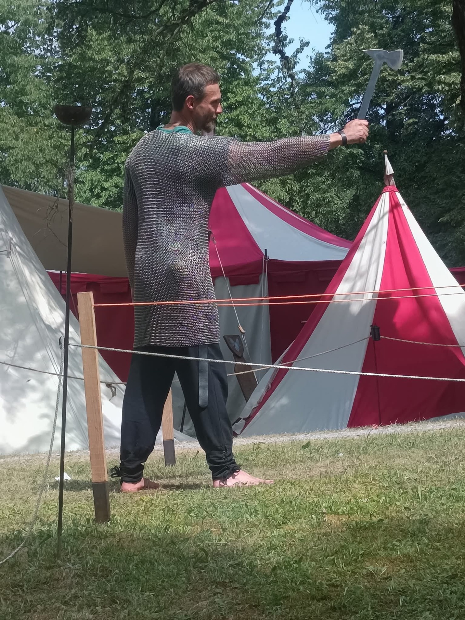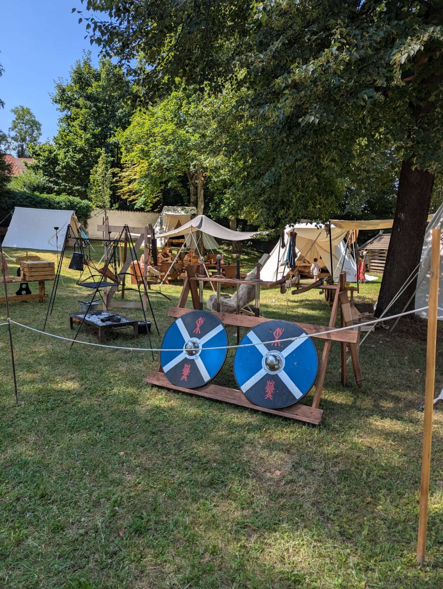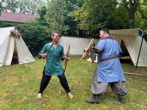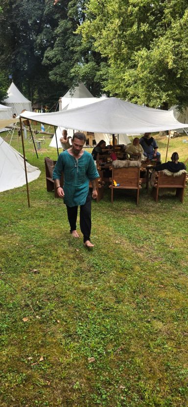 Die Kinder planschten im Kneipbecken, der Axtwurf ward gut besucht. Erik bereitete am Abend den geangelten Fisch mit Rosmarin-Erdäpfeln. Angel, der Fisch nicht mundete, briet sich Erdäpfel mit Speck und Ei. Zu fortgeschrittener Stunde zog sich das Jarlspaar zurück. Die Jugend wanderte zum Lager der 22’er, Erik und Mara verweilten, in trauter Zweisamkeit, am Feuer.