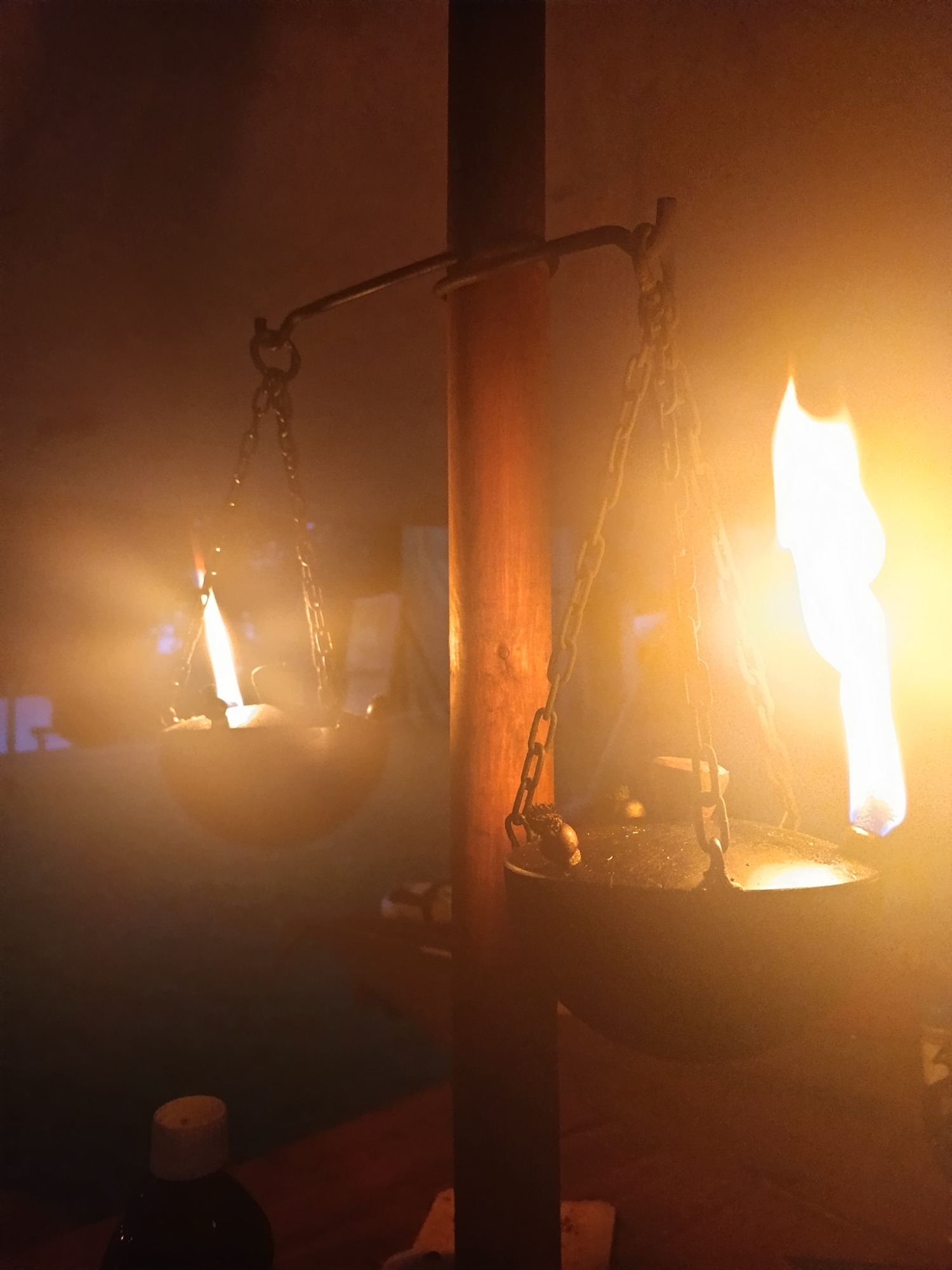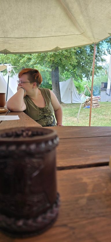 Am Freitag im Julmond ward Runa früh auf den Beinen und bereitete Wasser für die Heißgetränke. Angel hingegen zog gen Duschstelle – in der Hoffnung auf warmes Wasser. „Mal sehen ob es hier warmes Wasser gibt“, dachte sie in Erinnerung an das letzte Lager in Weißenhorn. Doch der Kessel war leck, kein Kesselflicker in Sicht. Die Abkühlung tat dennoch wohl.
