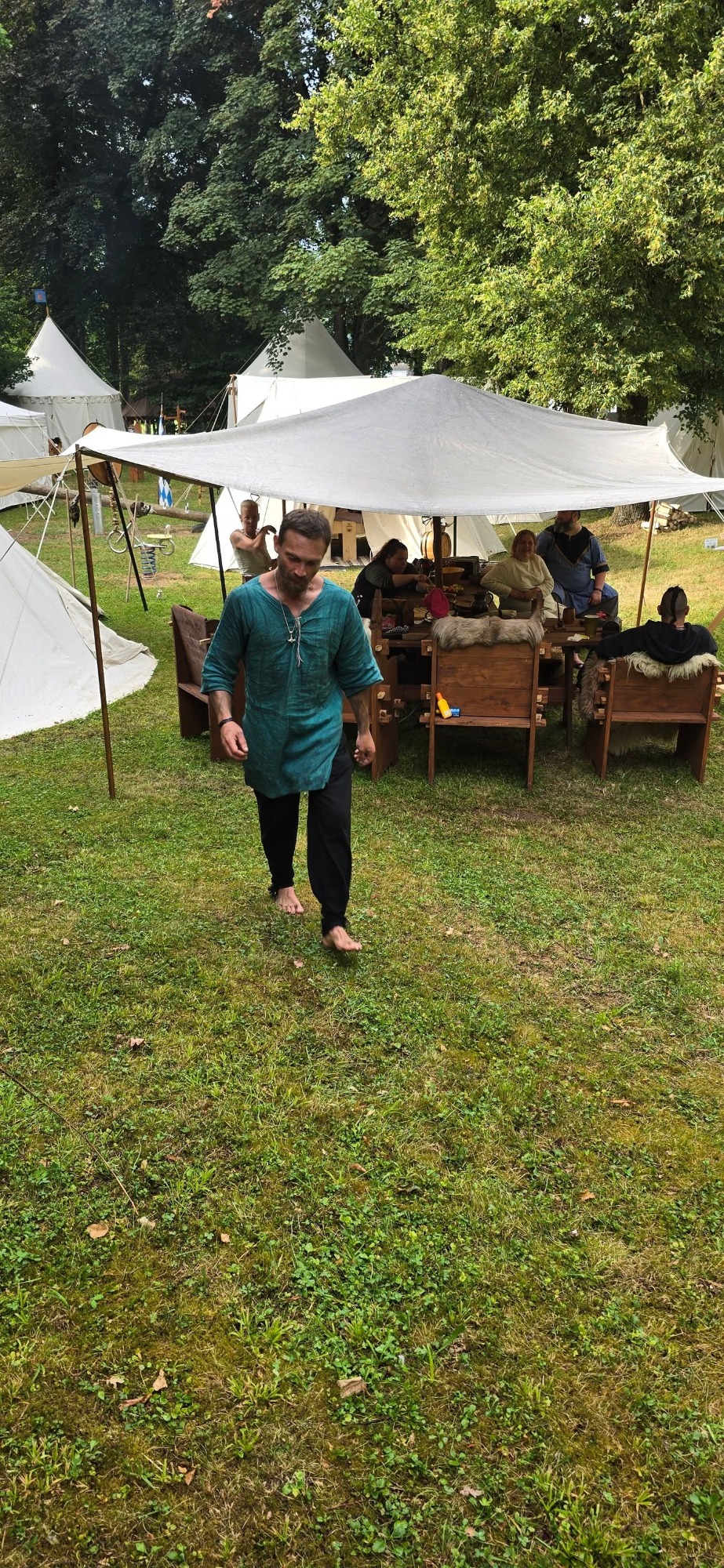 Angel und Leif suchten erneut die Duschstelle auf – doch das Wasser blieb kalt. Nach dem Frühstück sprach das Jarlspaar zur Sippe: Es ging um Benehmen, Respekt und Hierarchie im Lager. Danach begab sich Angel ins Lager der 22’er für ein klärendes Gespräch mit deren Oberhaupt. Man einigte sich: Wollte man des Abends zusammenfinden, so solle dies im Lager der 22’er geschehen – dort sei mehr Platz.